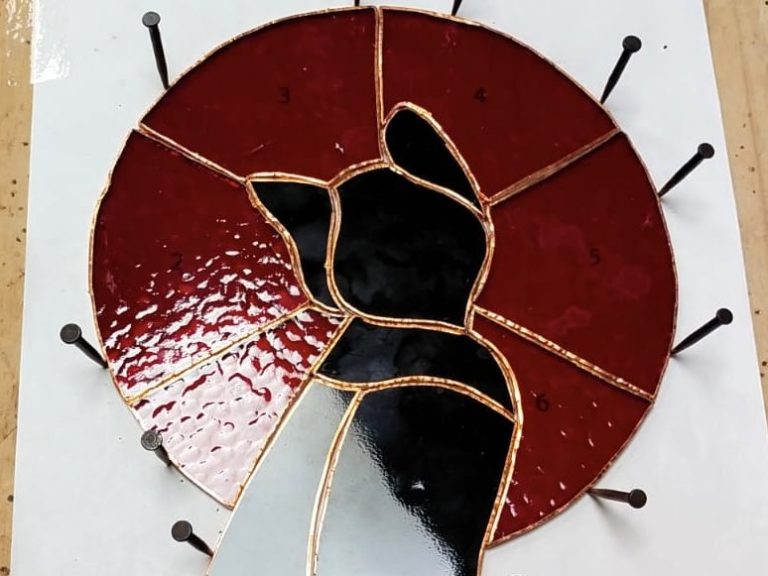 Dessin, découpe des gabarits, coupe des verres, chemin de plomb et soudure, toutes les étapes seront réalisées par les élèves.